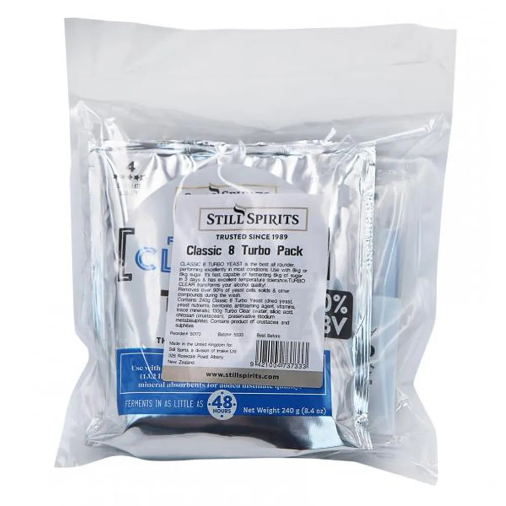 Classic 8 is a yeast and nutrient mix that performs excellently under most conditions. It is the best all-rounder Turbo Yeast, specifically formulated to ferment 8...